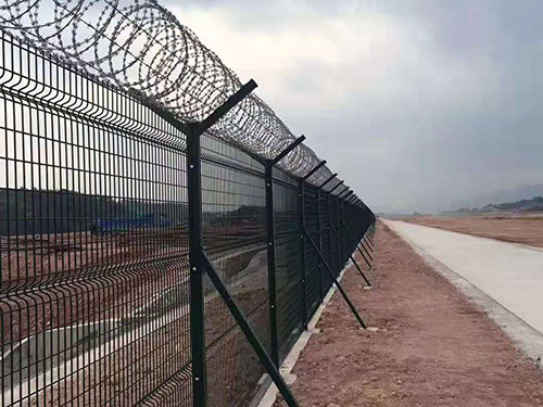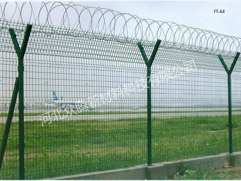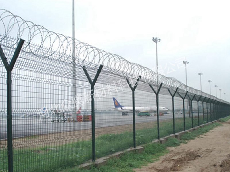 機(jī)場(chǎng)圍界又稱作“Y型安全防御護(hù)網(wǎng)”,是由V型支架立柱,加強(qiáng)型焊接片網(wǎng),安全防盜連接件和熱鍍鋅刀片刺籠組成,安全性高、防攀爬能力好